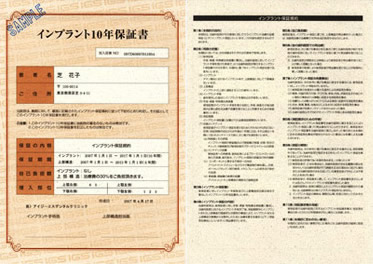 登録歯科医師によりインプラント治療が完了した時点で患者様宛に「インプラント保証加入証書」が発行されます。